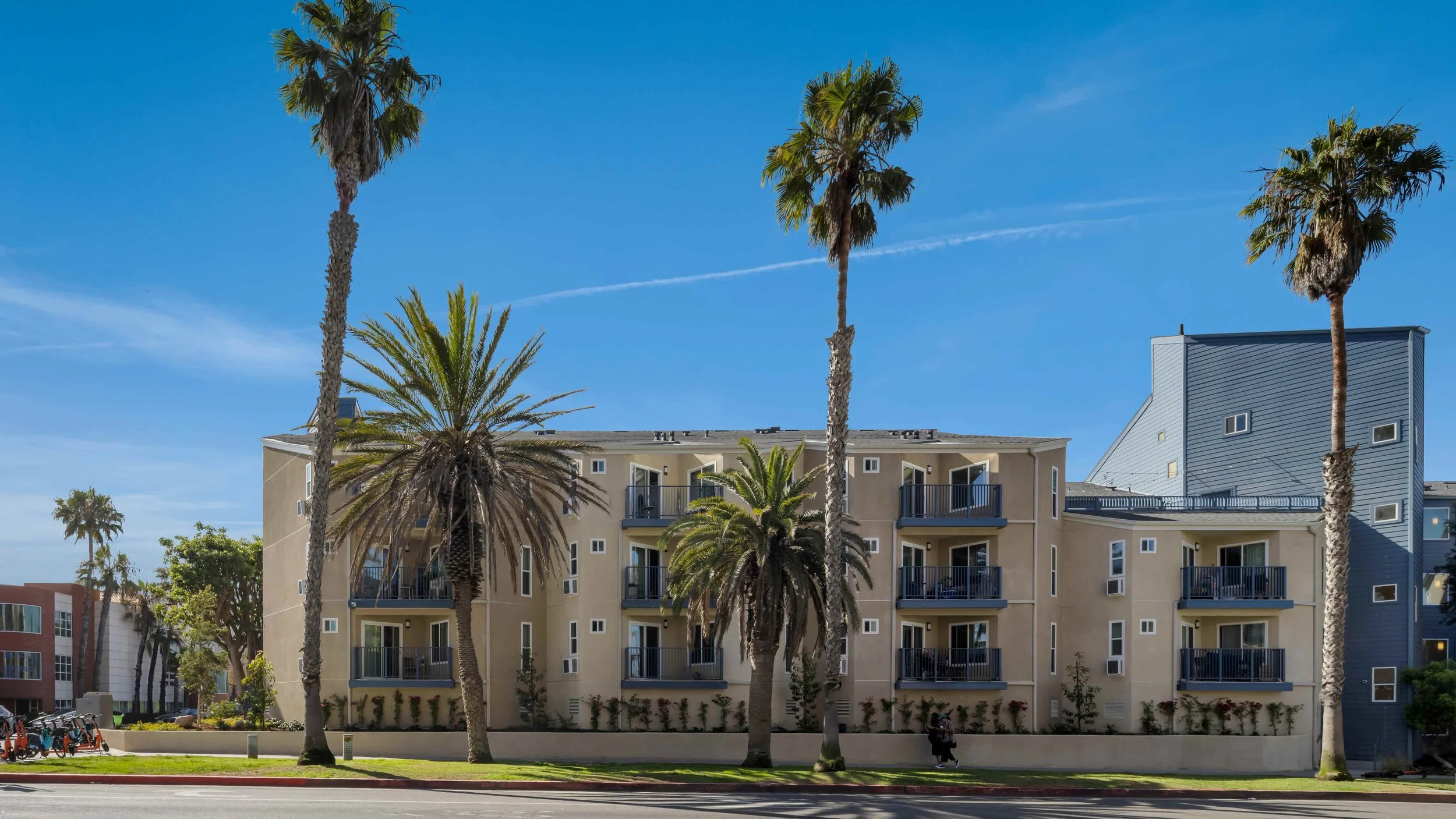 Exterior façade improvements refreshed the building’s presence along Barnard Way while maintaining its scale within the surrounding residential context. Balcony upgrades, façade refinements, and site improvements were designed to complement the coastal environment and reinforce the building’s identity within Santa Monica’s historic beachfront corridor.
