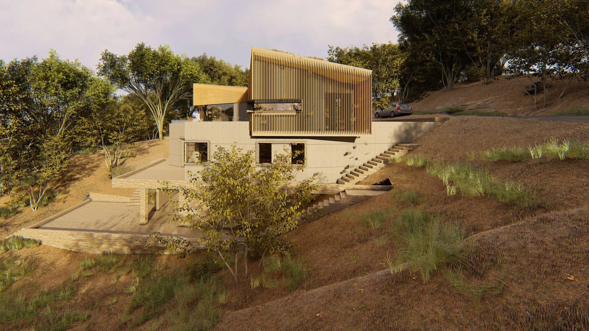 PROGRAM: Single-family residence with 3-bedrooms and 3-bathrooms, decks and gardens